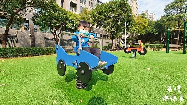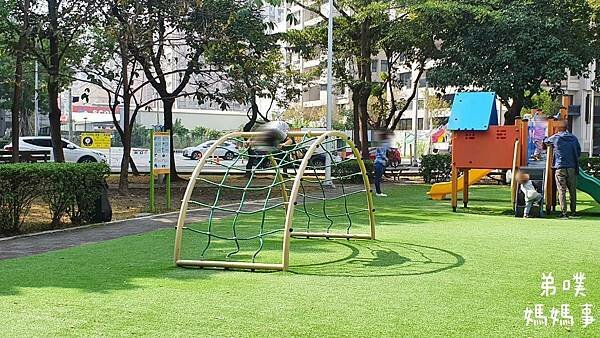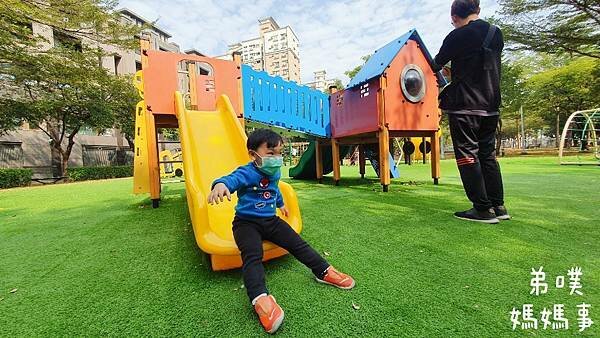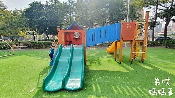 這片人工草皮蠻大的,1月上午來還有點樹蔭可以遮涼讓孩子們喝水,不過真的要注意這邊有小黑蚊,弟噗在這邊喝水,就被叮癢癢了