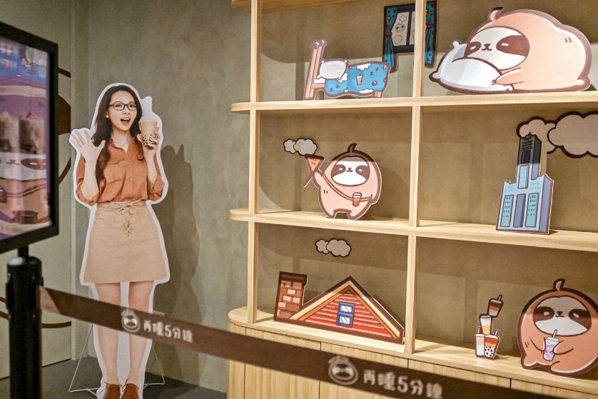 「再睡五分鐘」是由超知名的YOUTUBER滴妹與團隊共同創辦的品牌開的,最可愛的就是熊貓眼很重的樹懶吉祥小咖,這個也是高雄獨家,有興趣想喝看看可以來唷。