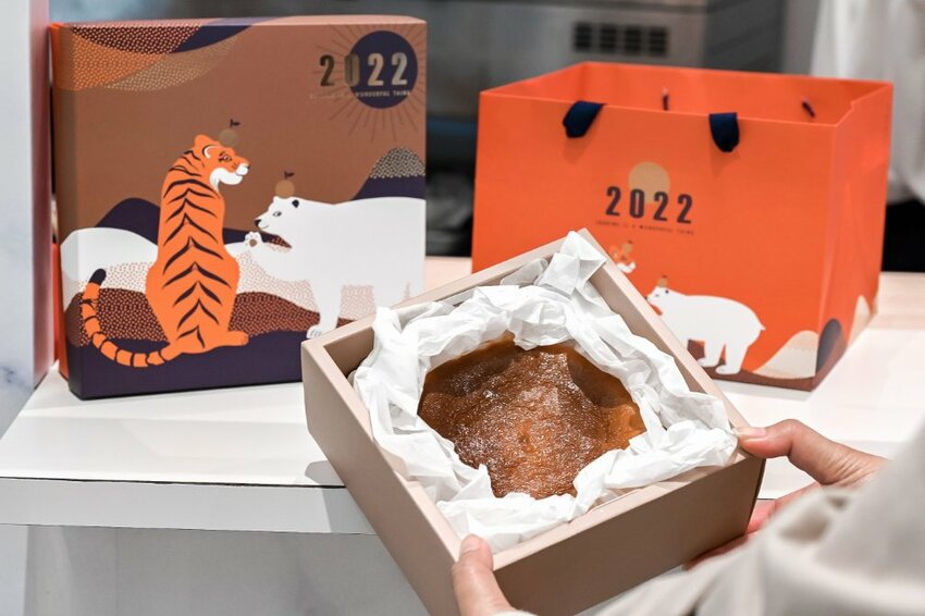 還有高雄知名芋頭甜點飲品專門店「夏爾沫茶飲店」,也首次到百貨公司參展還推出「義享限定獨家虎年禮盒」,外盒與提袋可愛到想直接買回家收藏,販售的是芋泥巴斯克乳酪蛋糕(8吋) 980元,超級特別。
