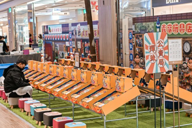 來到這裡就像是個小型夜市,雖然不大但每個都是充滿童年回憶,第一站彈珠公賣局,深受大小朋友的喜歡,這個我也超愛玩。
