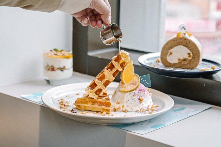 蜂蜜優格冰淇淋方格鬆餅(甜點加購$149):鬆餅也是來奎克必吃,方格鬆餅淋上香甜蜂蜜配上清爽優格與香草冰淇淋與脆脆穀片,口感豐富,當收尾最適合。