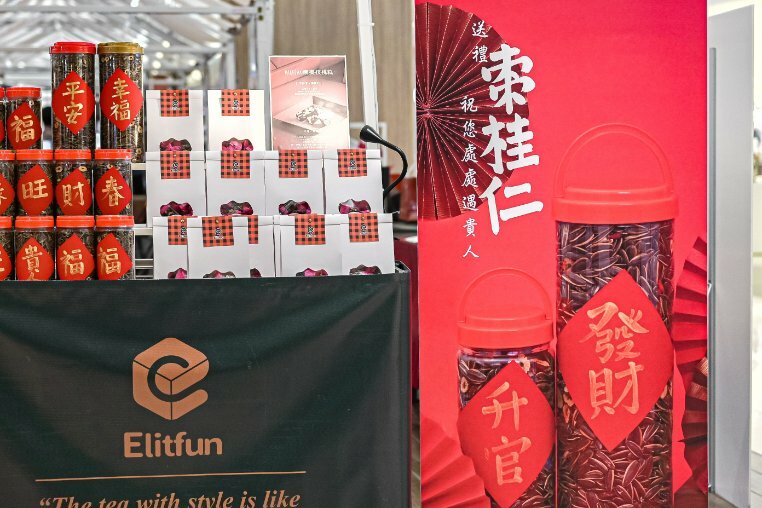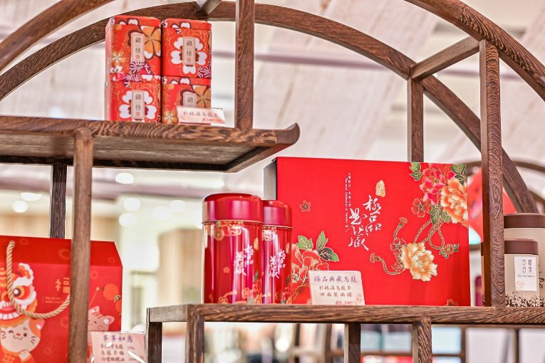 「巽字號茶舖 xun zi hao|烏龍、普洱、茶器」提供的年節禮盒喜氣洋洋,是一間販售高級茶葉的店家,送禮最為大方,現場有茶可試飲。