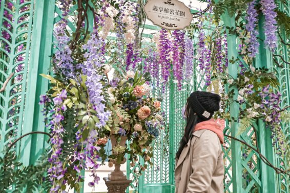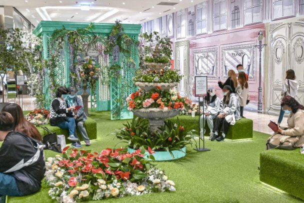 享樂熊往後走就來到了義享秘密花園,之前還是充滿聖誕氣息的花園,此時已換上新年應景花卉-火鶴花佈置,讓愛拍照的顧客再留下一張張美照,也是能坐下來稍微休息聊天的小廣場。
