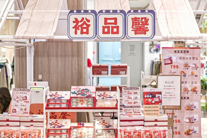 期間限定的在地伴手禮品牌包含「裕品馨」是成立20年的傳統糕餅品牌亦是台式糕餅專家,堅持純手工製作,依循古法傳統技術加上獨門配方,成就不失傳統的創新式糕餅,此次推出派對分享禮盒799元 (花生糖1+杏仁蔓越莓越牛軋糖1+鳳梨發財球1+紫晶酥3+流沙酥3)。