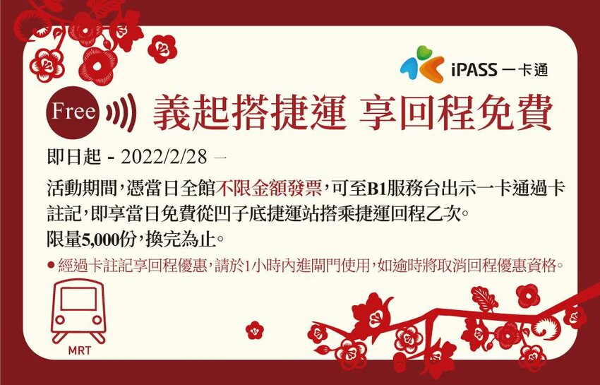 ◆ 【義起搭捷運,享回程免費】 詳細資訊請見 >> 活動頁面