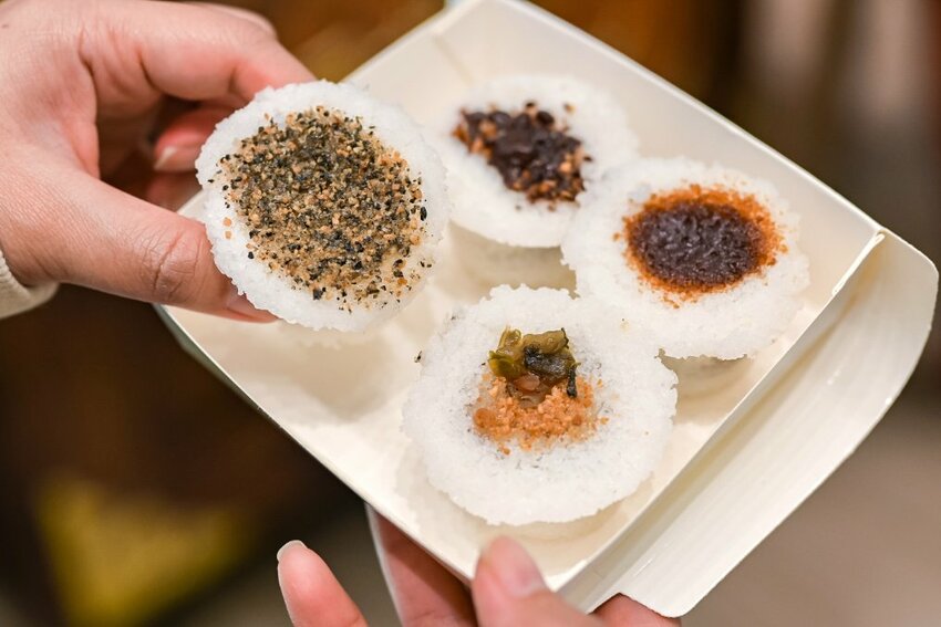 「輝嚐香狀元糕」光聽名字就覺得非常香阿,狀元糕是夜市傳統小吃,以純米磨成的米粉吃起來相當Q彈如麻糬,不失傳統又加入個人巧思,我吃了四個口味「黑糖、芝麻花生、榛果巧克力、花生菜圃」,其中輝嚐香獨一無二的口味榛果巧克力一定要來品嚐,有如化在嘴裡的金莎巧克力,相當特別,也只有來高雄才吃得到唷!