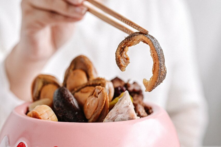 官網推薦加熱方式將高湯、烏參、干貝以及食料覆蓋後放入電鍋或是蒸籠約75分鐘,再放解凍後的鮑魚高湯蓋過鮑魚,再蒸約15分鐘就可食用 (食用方式連結請點)。