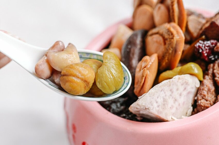菱角、 栗子、 炸芋頭等配料都不會太過於軟爛看不到形體,還是可以吃到固體軟綿感,我覺得相當不錯。