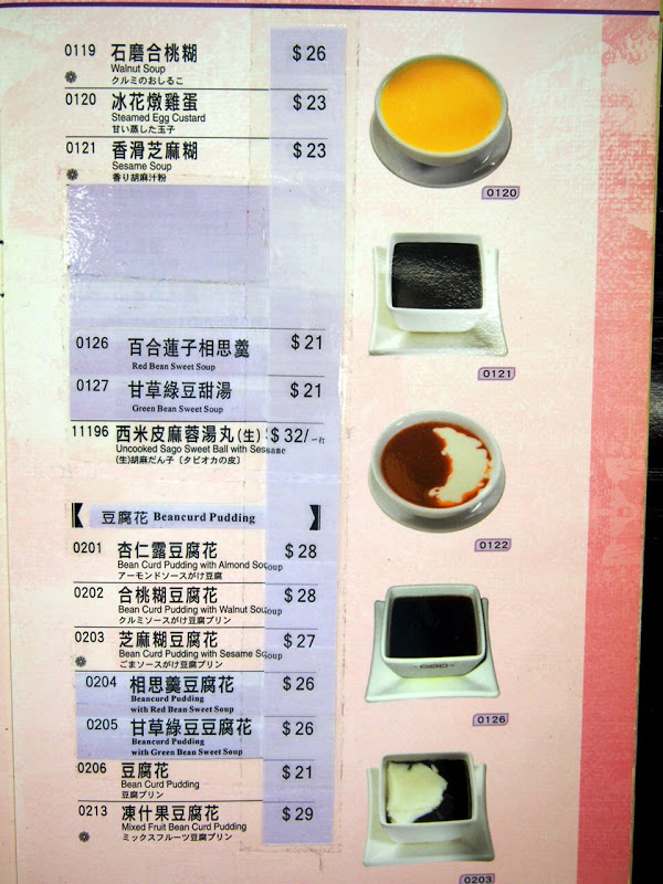 部分的菜單(看起來有頗多產品被劃掉了,可惜。這邊還有賣類似茶餐廳的食物,不過我沒有拍)