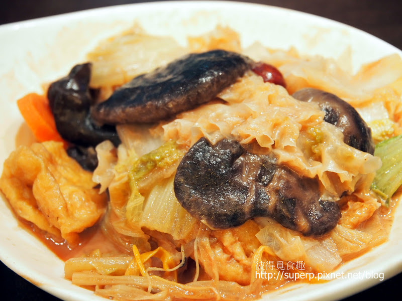 南乳粗齋HKD22(南乳就是豆腐乳。這是我看到許多人推薦過的菜,果然一吃馬上超級驚艷。白菜爽脆,香菇Q彈,重點是都吸飽了南乳醬。這南乳醬非常的鮮甜可口,可惜味道有一點點的重。不過這是我吃過最好吃的素菜,一般的根本沒得比,總之是特推!)