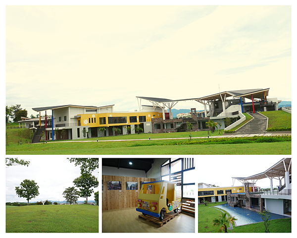 占地11公頃,融合了風、光、水、色而建的遊客中心建物超吸睛!採光天井前後均有大景,往入口處遠望能清晰的看到連綿山巒,往建物後方看是梅花鹿地景大草原。