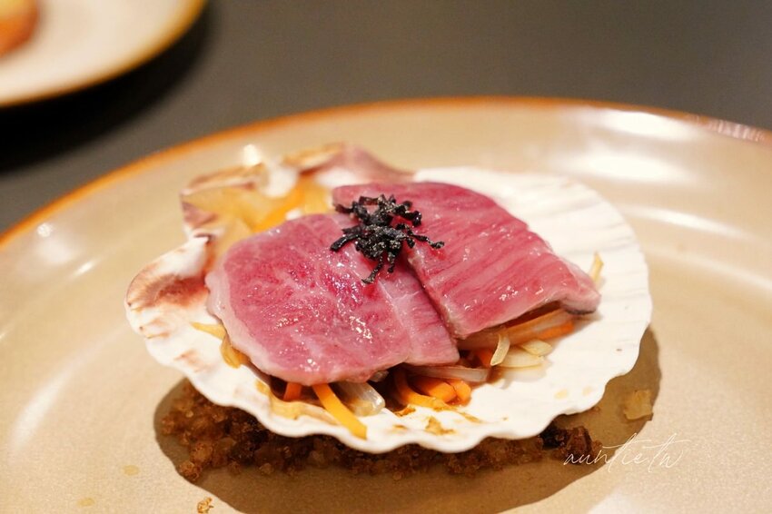 和牛油花很美,口感不錯沒到入口即化的程度,底下的蘿蔔有點出戲。