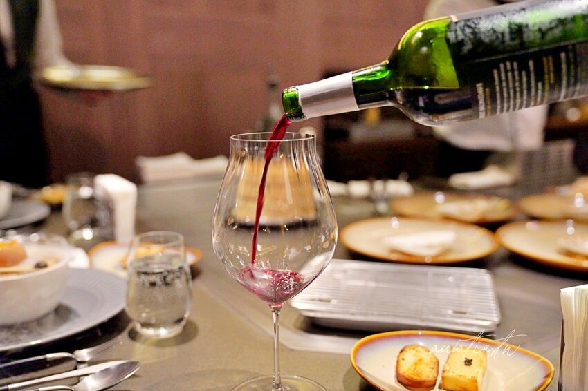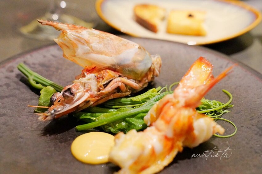 明蝦本身肉質鮮甜,一開始吃得很開心還把蝦頭拿來吸,不過真的蠻腥的,趕緊喝口紅酒漱漱口;