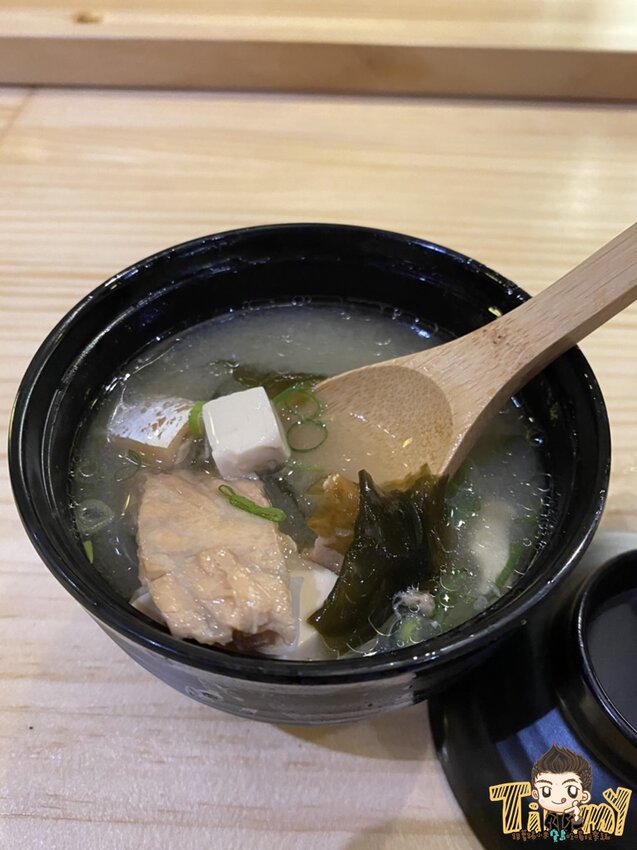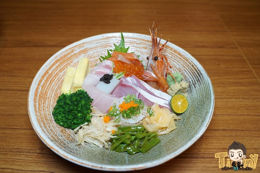 以生魚片的腹部為主,像是有鮭魚腹、紅甘、海鱺、花枝等等,還有較為高級的牡丹蝦與一顆大干貝,喜歡吃頂級海鮮的朋友,建議可以直接攻頂喔。