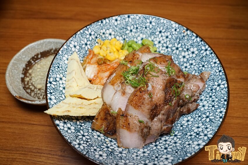 手工手路菜,蒜香鹹豬肉丼飯(220元)這也是一般店家比較少看到的丼飯,使用半肥瘦豬肉醃製入味,鹹甜不死鹹,搭配蒜泥汁醬汁,真的是很對味,米飯一口接一口,還有串聚的米飯可以無限供應,大家就別客氣唷。