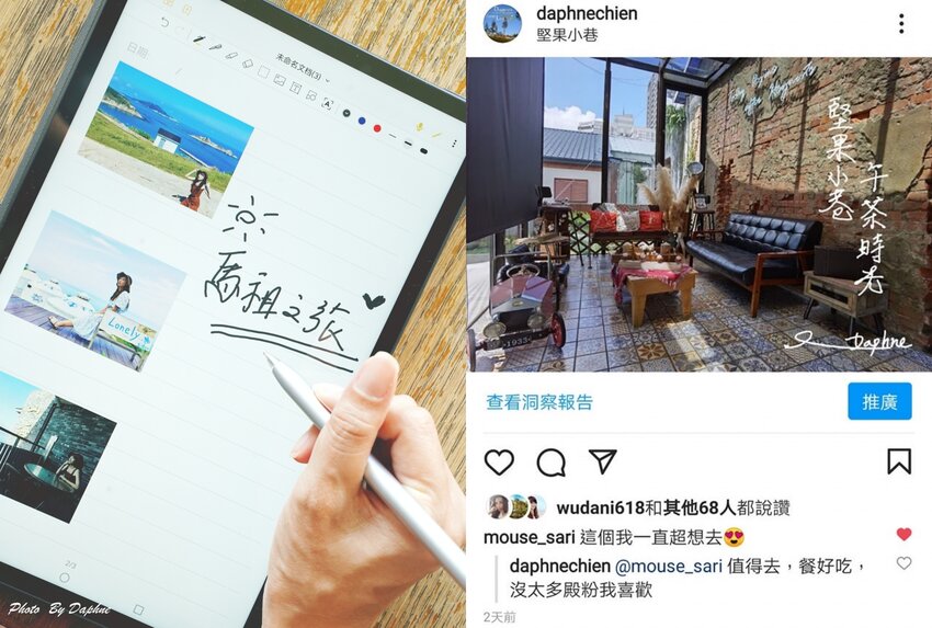 前陣子在馬祖玩時,挑了幾張滿意的照片做手帳、到台中喝下午茶上傳照片到 Instagram,也因 HUAWEI M-Pencil 手寫筆為作品帶來溫度。