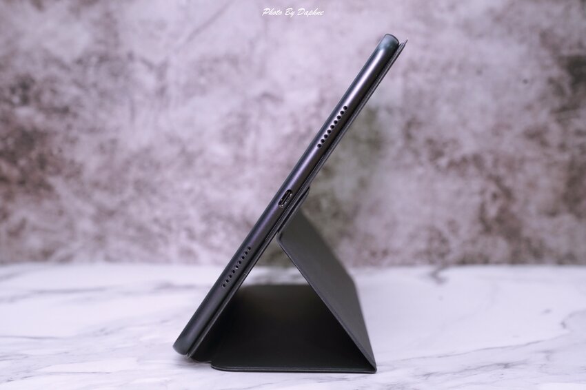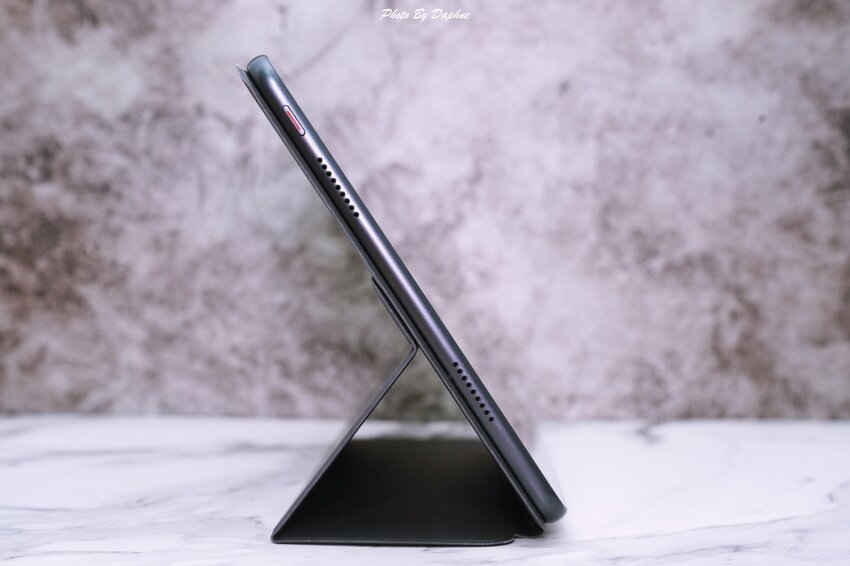 Daphne 這次拿到的 HUAWEI MatePad 11 是曜石灰顏色的10.95 吋,僅有 485g,比 MatePad Pro 又更加輕盈一些。在顏色上,曜石灰也能顯現色彩層次,不是一看就耀眼無比,卻很耐看,而外殼用金屬材質,以磨砂形式處理。