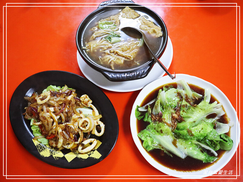 這是老闆娘討論之後的菜色,有的根本沒在菜單上😆😆,因為我們看了網友評論,堅持想點火爆花肉,但老闆娘又想讓我們嚐嚐他們的獨門三巴醬XD,於是把三巴花肉改成了三巴透抽,又加個清爽的燙青菜。