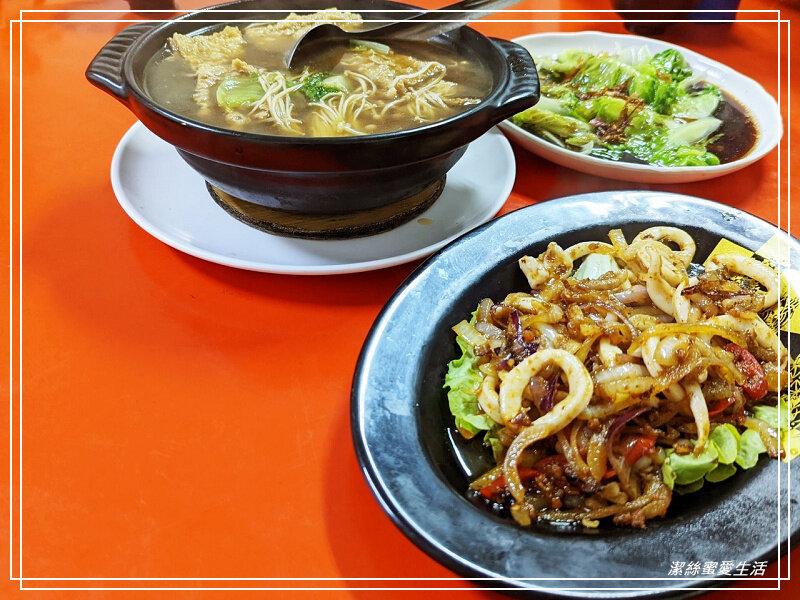 今日點餐:肉骨茶/燙青菜/三巴透抽/火爆花肉。