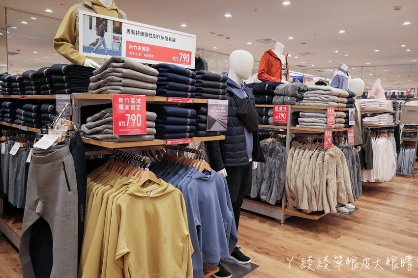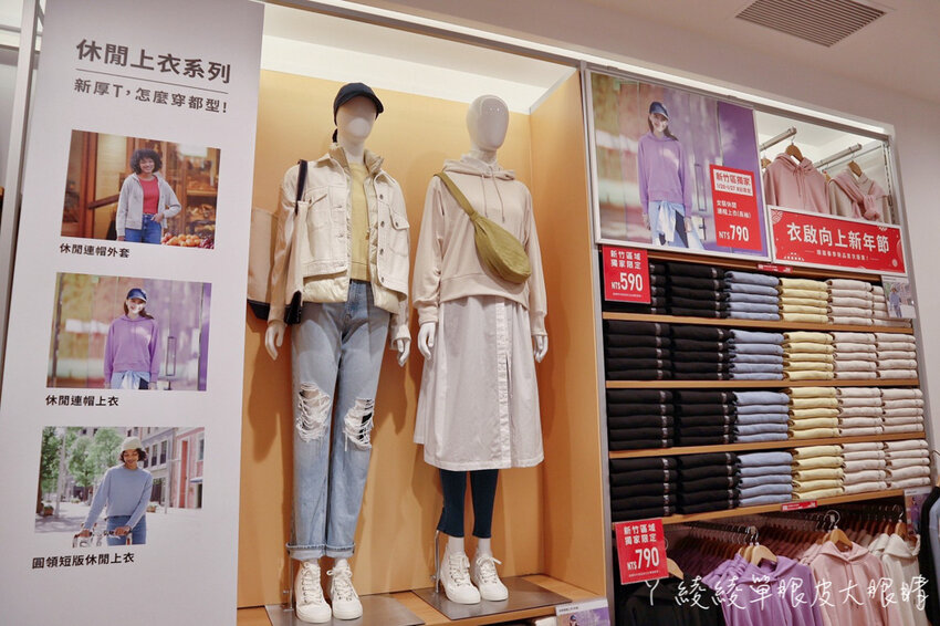 這次UNIQLO遠百竹北店推出許多新竹區域獨家限定優惠,在其它分店可是買不到這麼甜的價格,趁現在開幕趕快去搶一波嘿!厚T也是今年很流行的喔!