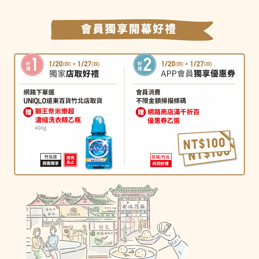 網路下單UNIQLO遠百竹北店取貨,贈獅王奈米樂超濃縮洗衣精乙瓶 (數量有限 送完為止) - APP會員實體門市好禮1/20-1/27