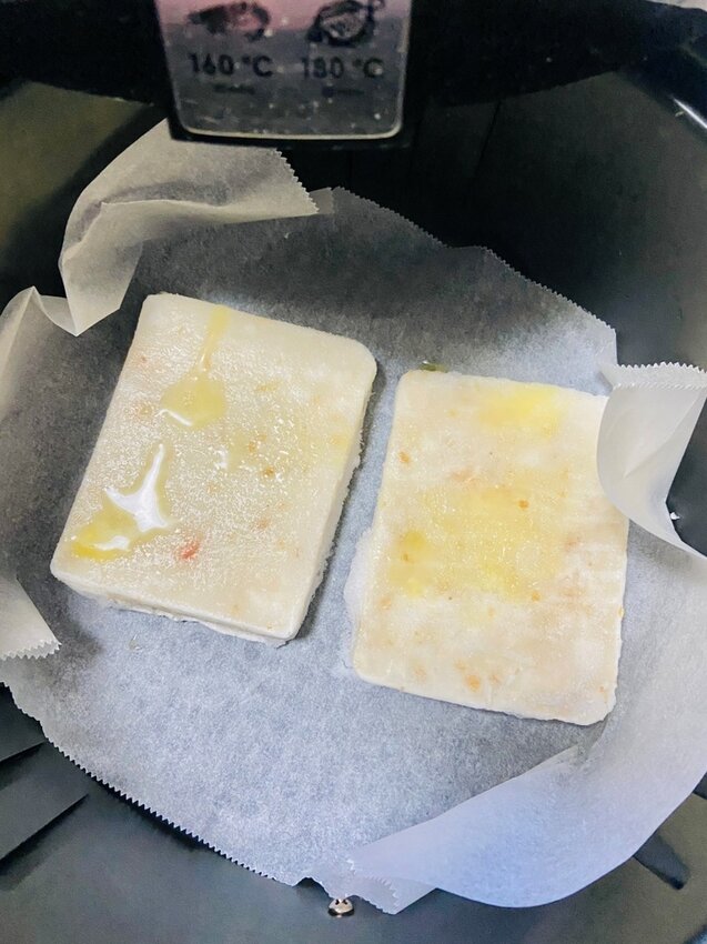 ▶蘿蔔糕表面噴些油,氣炸鍋180度8分,再翻面5分