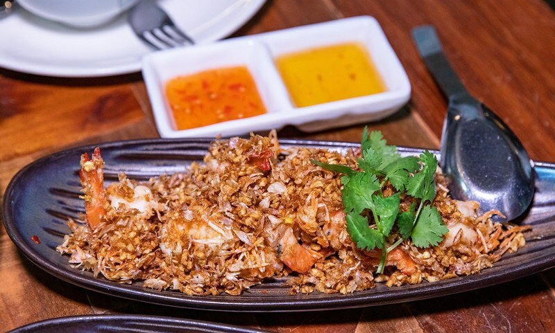 炸蝦子也是泰南料理常見的家常菜,只是調味的方式略有不同,這家是以蒜酥為搭配,有一點像粵式的避風塘加上微微的辣度,油溫的控制極好看起來油吃起來卻完全不會。