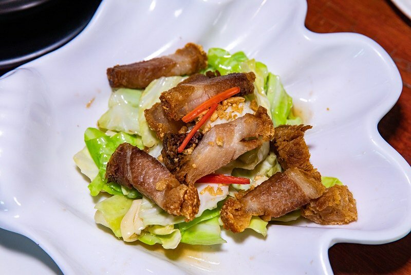 也許是受福建料理的影響,這幾天吃到了各種豬五花肉的料理,像是三層五花肉的切法卻再過油炸,多了豬油渣的豬油香,口感也多了一個「酥」的層次,底下吸收了豬油香的高麗菜都變得異常美味。