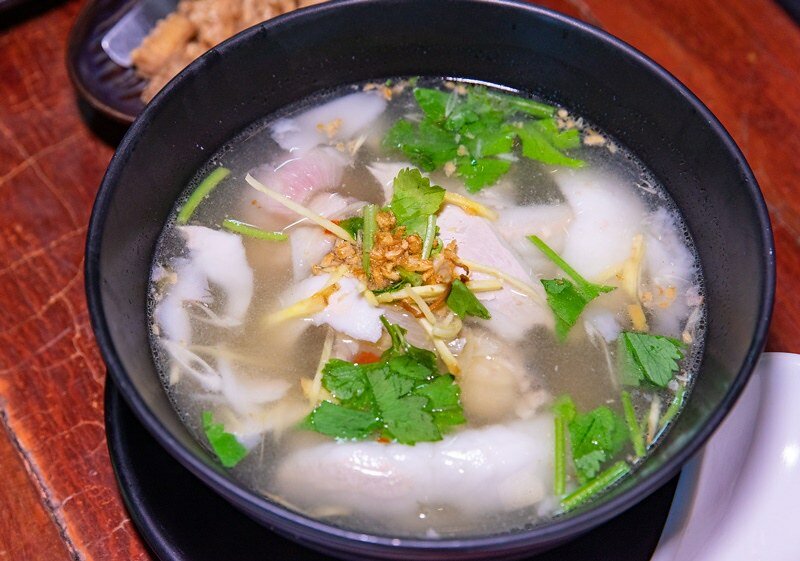 這道魚湯有一點台式的影子,魚鮮加上薑絲,但最誘人的卻是椰子肉的甜度和微微泰式香料和油蔥的點綴,這碗魚湯沒準是我在泰國喝到最清爽最美味的,魚是什麼魚我不是很清楚,但很細很嫩也沒什麼魚刺,白色的椰子又綿又化肉都好好吃。