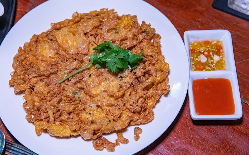 最後的泰南烘蛋,也是這幾天幾乎餐餐必見的料理,而Fashi的是大家公認最好吃的,除了入口不可思議油化的油酥度外,滿滿蛋和高溫油觸發的蛋香真是好吃的亂八九糟,搭配一點辣式酸辣醬,這一盤我可以輕鬆解決,不管是口感還是味道都超喜歡。