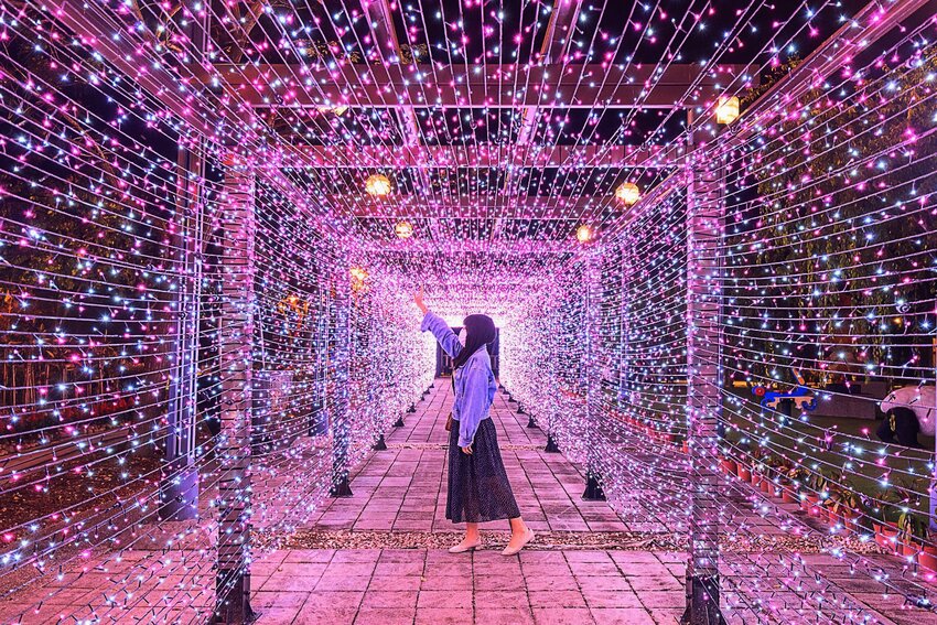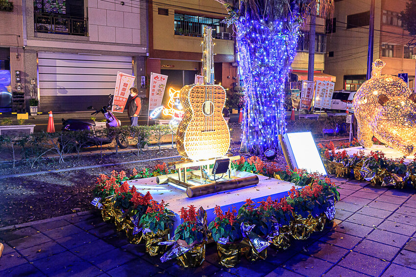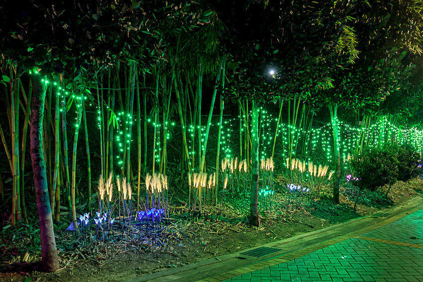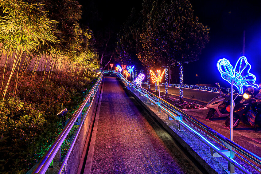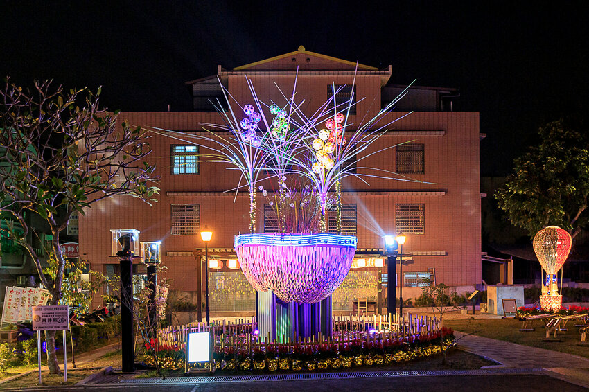 比起竹山菸葉館的主燈區來說,竹山文化園區的腹地更為廣闊,就連園區內的步道都有美麗的燈飾造景呢!