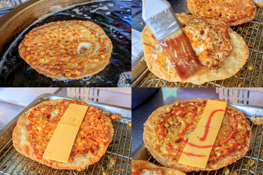 這裡有賣原味蛋餅、玉米蛋餅、起司蛋餅與綜合蛋餅,每份$30元起跳,不過真的挺大份,的確可以說是實在的銅板美食了,愛吃辣的朋友也可以請老闆加辣。
