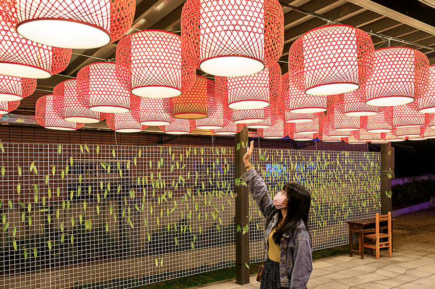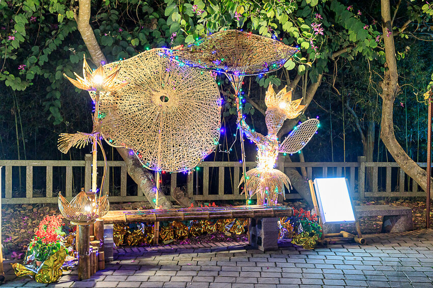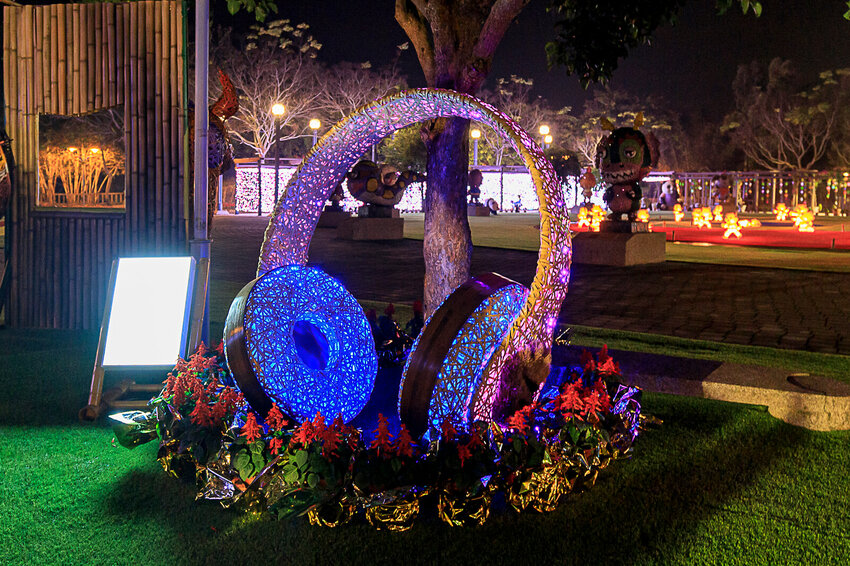 整個園區角落也有多件精緻的竹藝花燈,比如說可愛的「俏皮虎」、美麗的「記憶精靈」,以及格外吸睛的超大耳機「悅耳」。