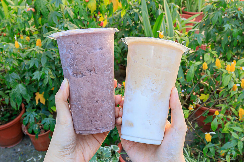 我們買了一杯紅豆沙與手炒花生沙牛奶,必須要說他們家的手炒花生沙牛奶真的很厲害,花生香濃的堅果風味與冰涼微甜的牛奶交織在一起,特別過癮!魚編點的紅豆沙也很清涼解膩,搭配我們後來在街口買的小米蛋餅剛剛好。