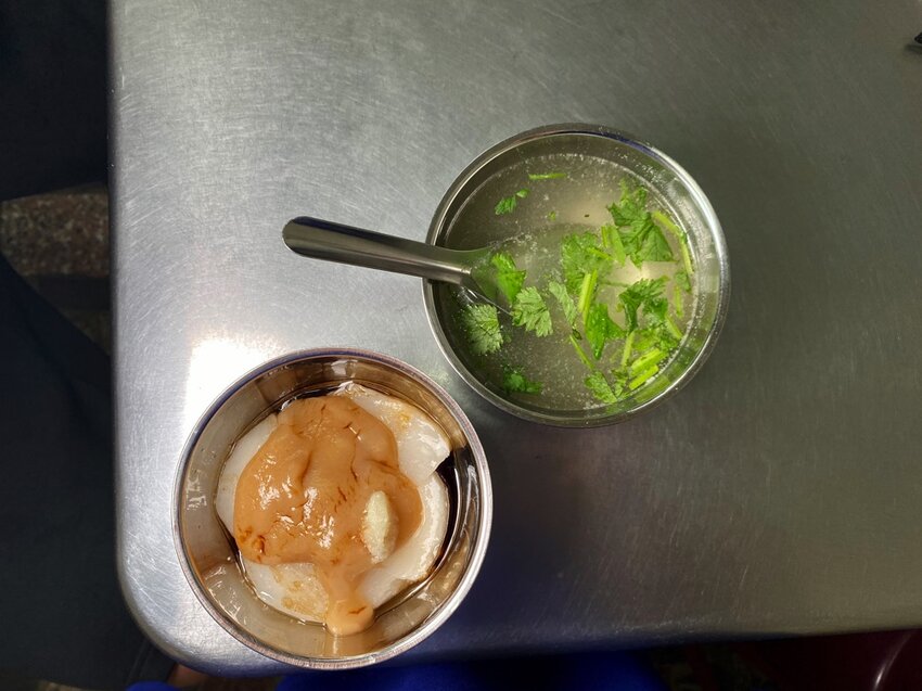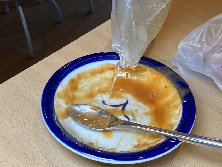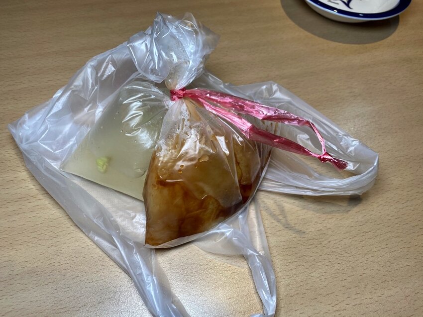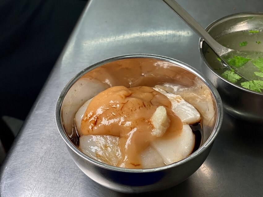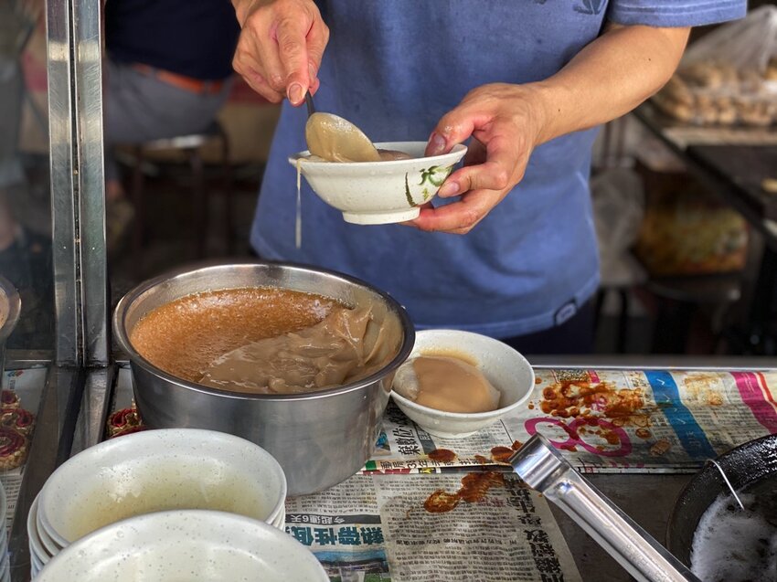 吃完以後,就是要把清湯 倒進 肉圓醬汁裡