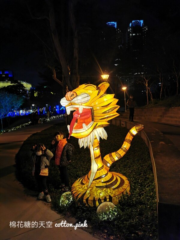 要特別提醒大家的是~原本文心森林公園是開放式的,四周圍有很多路口都可以走進來,但因為防疫的關係~所以除了四個馬路交叉口的入口幾乎都被圍起來了,請大家來看燈會還是要多多配合防疫措施,千萬不要跨越燈欄~確實做好實名制唷!