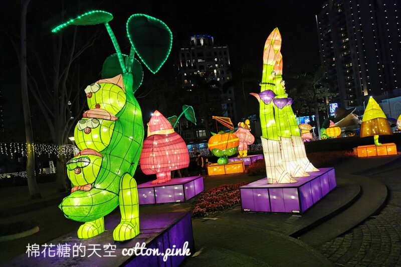 另外一側入口則是超大農夫搭配各式各樣Q版農產品花燈,旁邊兩側就是這次的市集地點喔!每年的市集就好像夜市一樣但這次的感覺會多一些農特產品和文創商品喔!