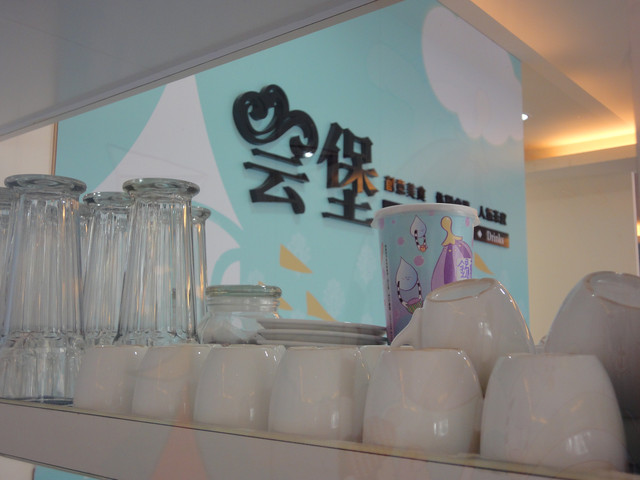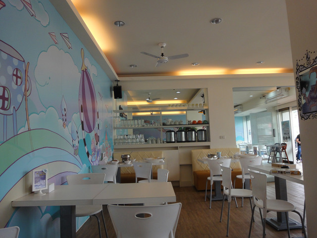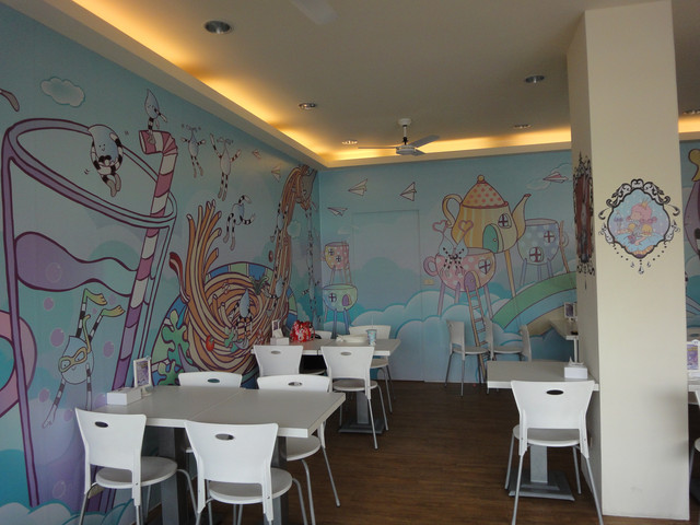 走進去時才發現,裡面的佈置是充滿童話般可愛的城堡塗鴉 (舒服的糖果藍)