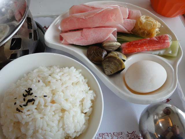 牛奶鍋上會放一片大大的起司,火鍋邊煮邊融化入牛奶鍋中 (很香