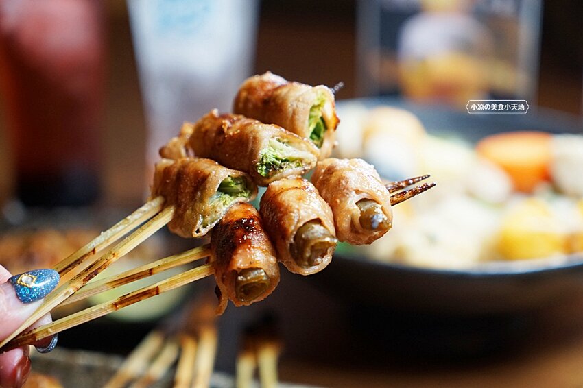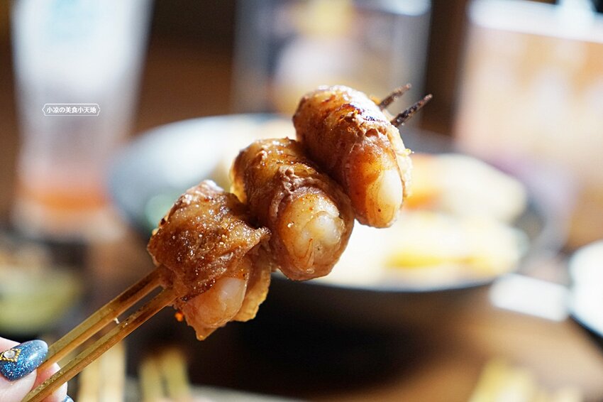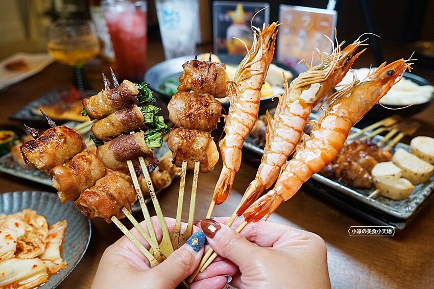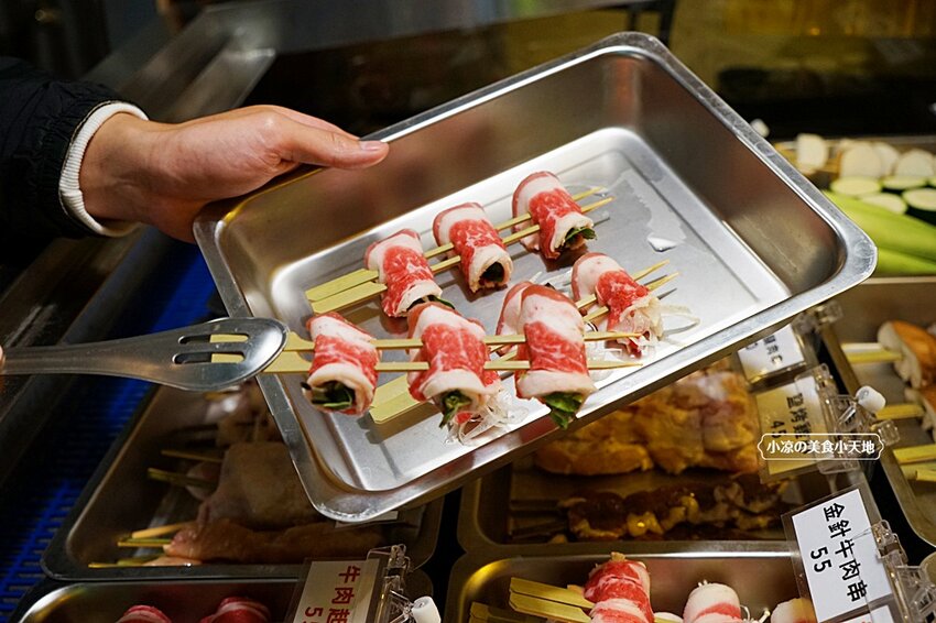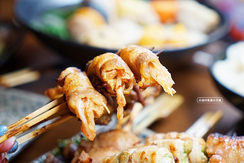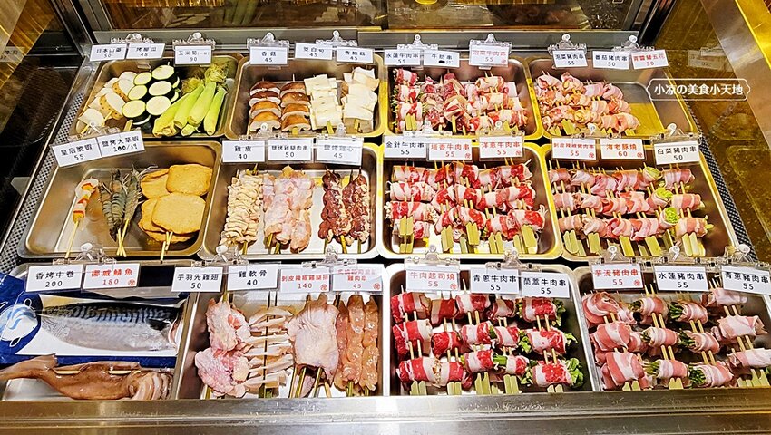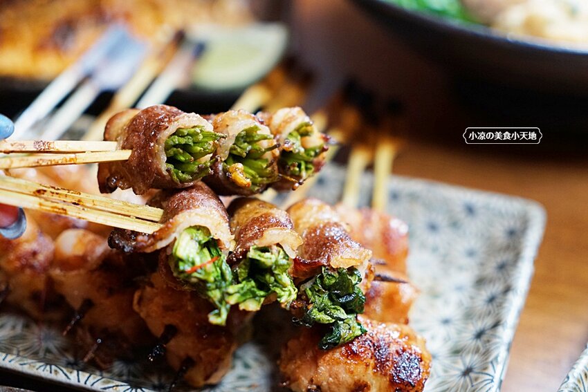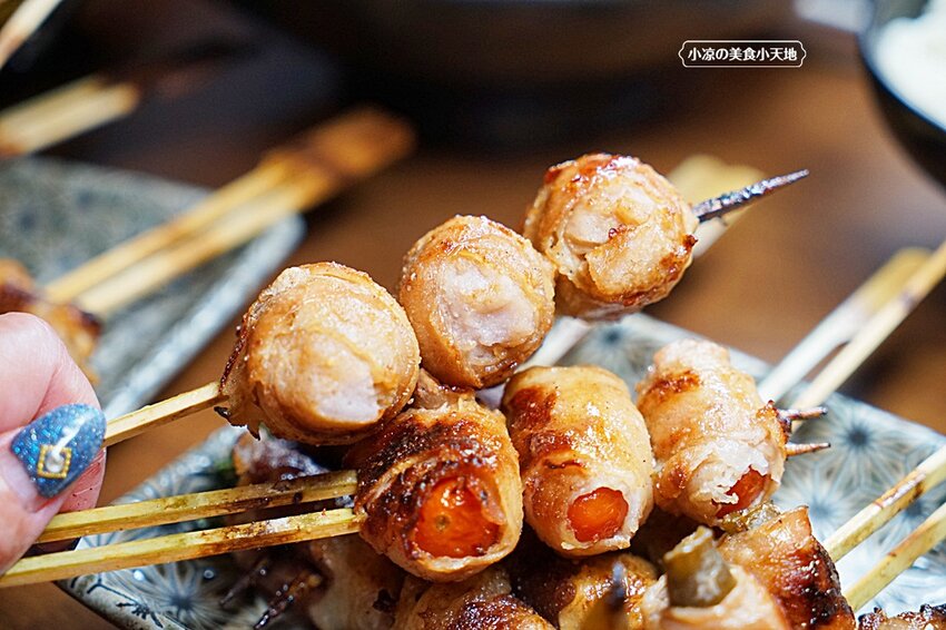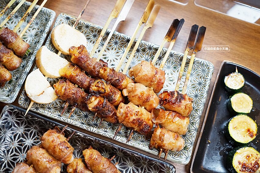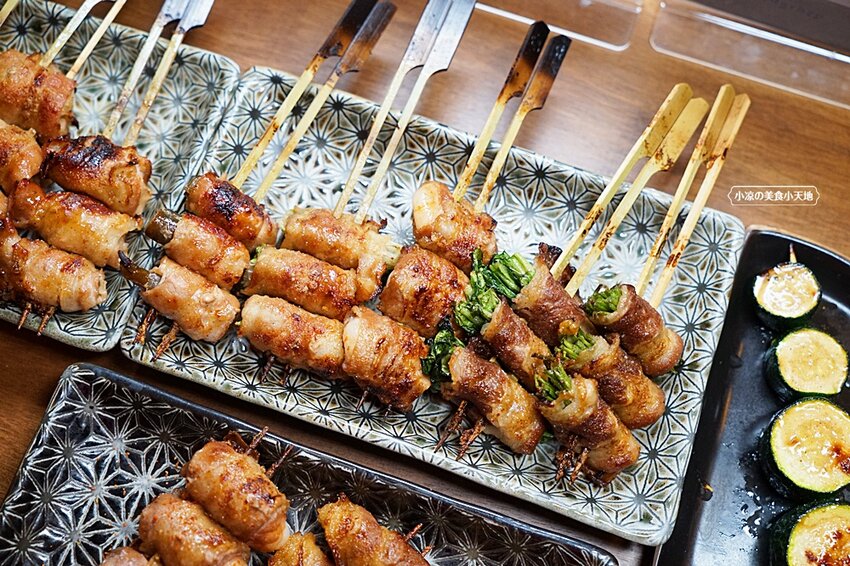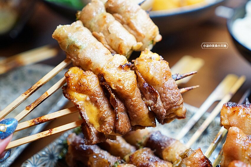 基本上店家在上串燒時會將牛肉與豬肉分別放上,但因小涼為了拍照而調整囉! 光這點我就覺得很貼心,畢竟一堆人聚餐,總是有不吃牛肉的朋友呢