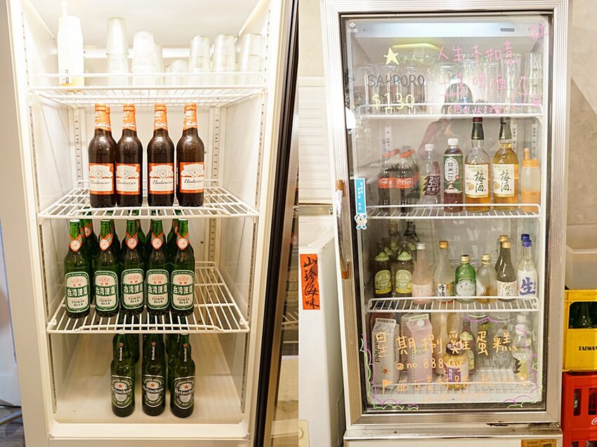 1、2樓的冰箱內都有啤酒或是梅酒、氣泡酒等,不喝酒的朋友也有無酒精飲料可選唷!!