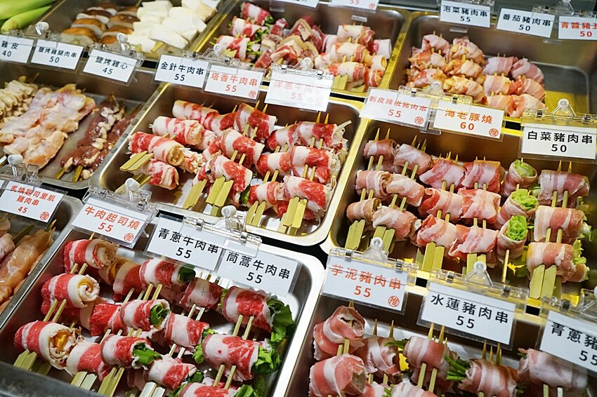 串燒每日大約提供40~50種口味讓客人挑選,所有品項都有清楚標記品名、價格,你會發現有些文字是紅色,那就是人氣招牌直接拿了就對了!!!