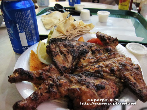 我點的Dajen B.B.Q Chicken,是他們的招牌烤雞Dhs22,約台幣200。一整隻雞看起來很殺阿,不過這才能撫慰一整天拜訪客戶後的心情