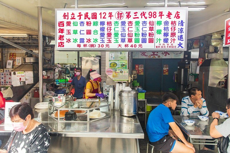 結果一看,居然是家百年老店...乖乖,最後找了一樣最不佔位空間,又有用到剛剛「刨」冰的招牌愛玉冰,其他的下次再來攻略。這家的愛玉米非常非常非常清爽,吃得出純然和自然,添上一點點金桔或是檸檬更具風味。