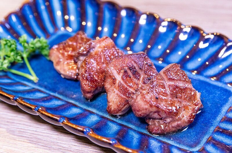 這位服務生真的非常專業,另一塊夢幻厚牛舌,他居然用改用滾刀狀,讓我們吃出這「塊」牛舌戴然不同的口感和甜度。滾刀塊的牛舌口感更是鮮脆,咬下後脆Q到不行,牛舌爆汁的肉汁簡直讓我不敢相信這是牛舌....完全顛覆了我對牛舌的味覺和口感,即便我在日本吃過那麼多貴森森的燒肉店,也不曾吃過如此厲害的牛舌。