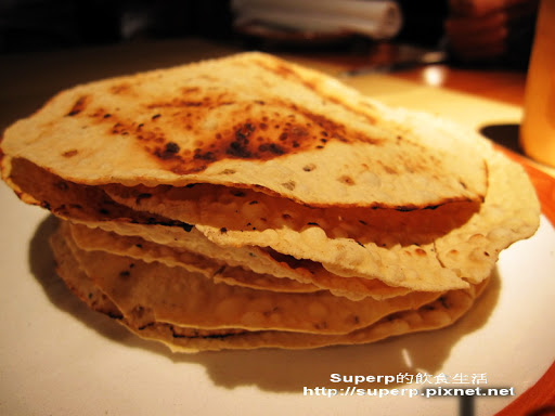 Naan印度烤餅(口感也很棒,不過發覺Naan的種類也頗多。在杜拜所吃到的Naan大多比這膨鬆軟Q一點,而這裡吃到的比較扁脆,已經跟台灣的蔥油餅有點像。在台灣我吃到的Naan有扁的也有膨鬆的,我自己是比較喜歡膨鬆點的)