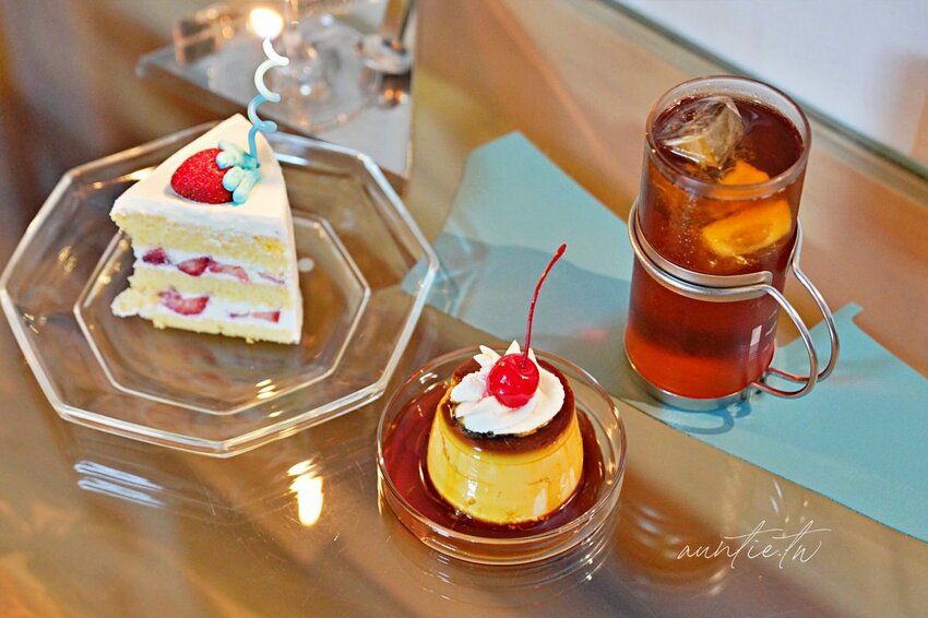 當天提供的是草莓鮮奶油蛋糕,樣子長得很老派,還會點上一支蠟燭,真的是生日蛋糕呀,真的太有趣了!草莓蛋糕的味道還不錯,很輕很柔,奶油的口感很細緻,算是基本款好吃草莓蛋糕,插著蠟燭端上桌真的太醋咪了啦!