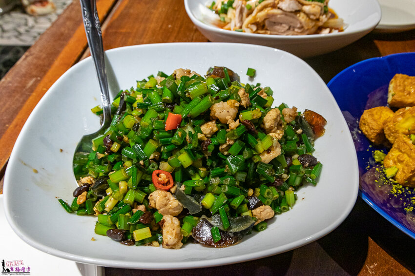 蒼蠅頭搗蛋,皮蛋是採用恆春當地的皮蛋,沒有皮蛋的腥味,有著韭菜花的清脆和皮蛋Q彈,還有著豬腳肉的油脂香氣,口感相當豐富。