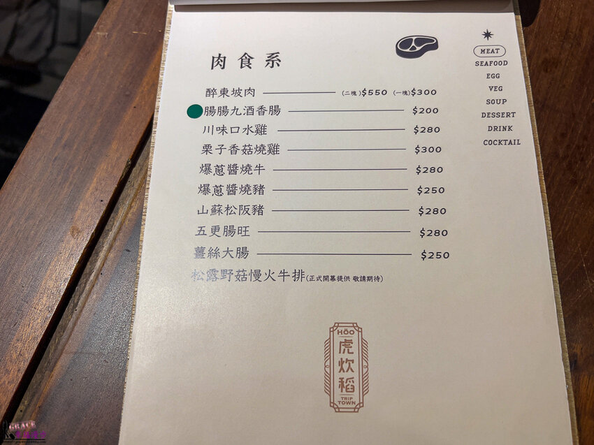 餐點MENU分類的很完整,這個是肉食系的餐點,服務人員來點餐時會很詳細的介紹餐點內容。