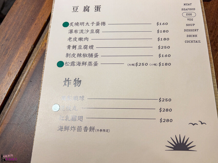 豆腐蛋系列和炸物,價格都落在160元~280元左右。